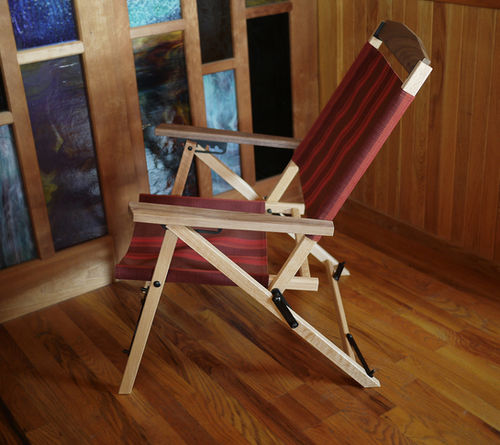 組み立て/分解の手間がなく、ワンアクションで開き/たためる構造の木製折りたたみチェアのLowタイプ。肘掛けの有無が選べます。